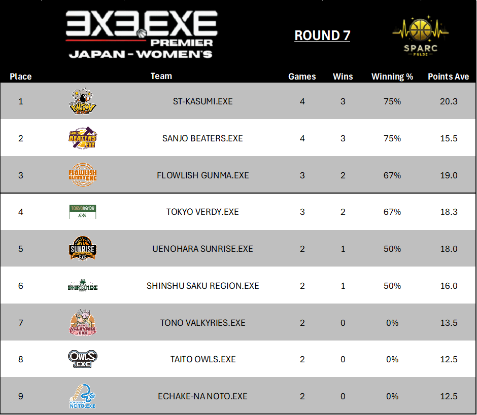 Round 7 of the 3x3.EXE Premier Japan Women’s Series brought the action to Ishikawa, where all nine teams were split into three pools of three. With the regular season fast approaching its conclusion, every possession carried extra weight. For the contenders chasing top seeding, it was a chance to solidify their place at the summit, while those in the middle of the pack were fighting to keep playoff hopes alive.