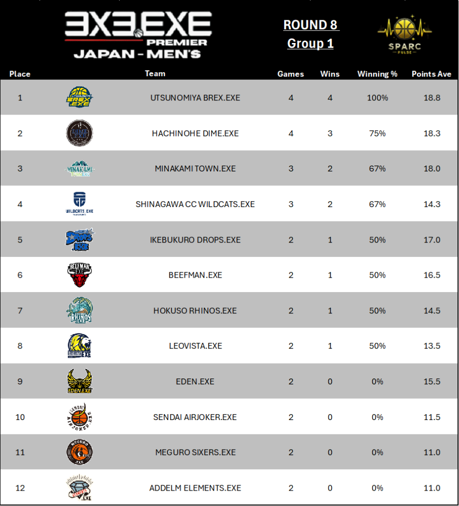 After both sides traded free throws, UTSUNOMIYA BREX.EXE needed just one more basket. As he had done all game, Ara turned the corner off the dribble, attacked his defender, and finished with a composed layup at the rim. It sealed a 21–14 victory, silencing the home crowd and delivering UTSUNOMIYA BREX.EXE not only the Round 8 crown but also, almost certainly, a secured spot inside the top seven of the 3x3.EXE Premier Japan standings.