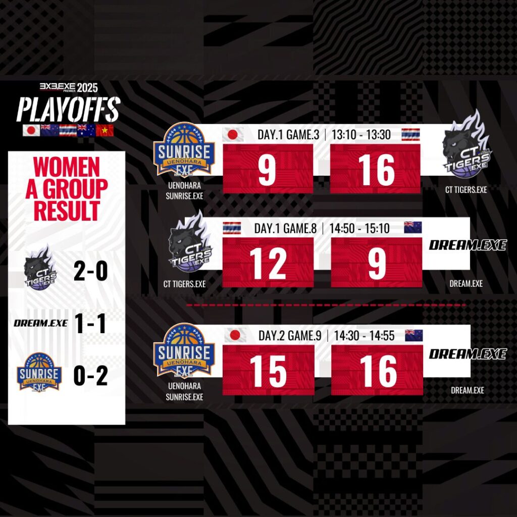 タイ2位でPLAYOFFS初出場を果たした彼女たちは、このプレーオフに向けて毎日のように敵チームの研究を重ねてきた。その努力が実を結んだ形となり、初戦で日本1位のUENOHARA SUNRISE.EXEを撃破。続くニュージーランド2位のDREAM.EXEに勝利。そして28日の決勝では、日本2位のSANJO BEATERS.EXEを破り優勝をつかみ取った。男子同様に女子も日本以外のチームが優勝を勝ち取るのは、2018年から始まった女子カンファレンスの歴史上初の出来事。タイ1位のCHUU.EXEがタイの3x3代表メンバーが揃っていたこともあり、完全にダークホースとして優勝をさらった。