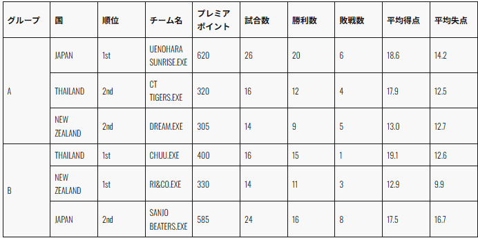 ■大会結果:DAY.1 - 2(9月27日-28日)女子予選グループ